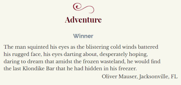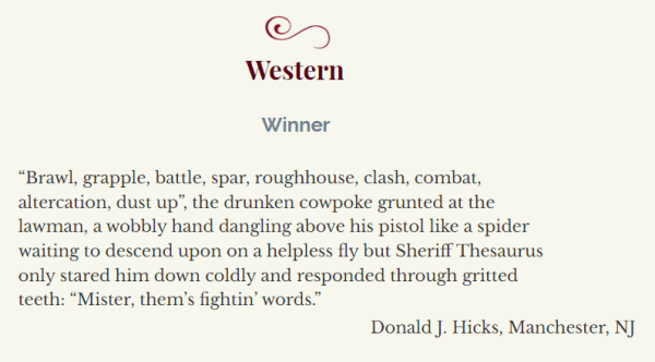 Two of the winners in the 2023 Bulwer-Lytton Fiction Contest! https://www.bulwer-lytton.com/2023