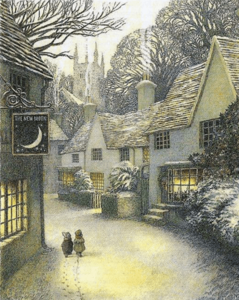 And this, just because it’s so lovely. Mole and Ratty on a winter’s night.